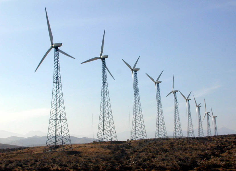 On both sides of I-10 are these wind turbines. The site for the U.S. Department of Energy's Wind Energy Program contains loads of information about these gadgets.